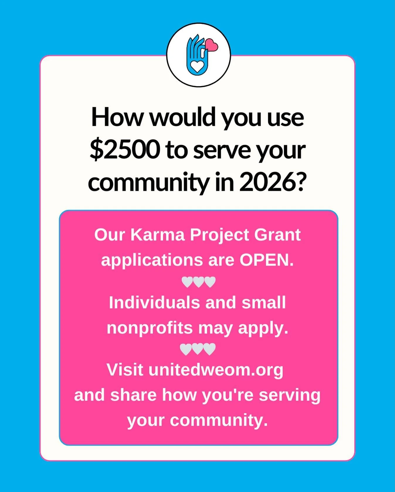 Our Karma Project grants share up to $2500 and are designed to be an approachable opportunity for compassion creators and community change-makers to access the financial support necessary to amplify their offering of love and kindness to the world.