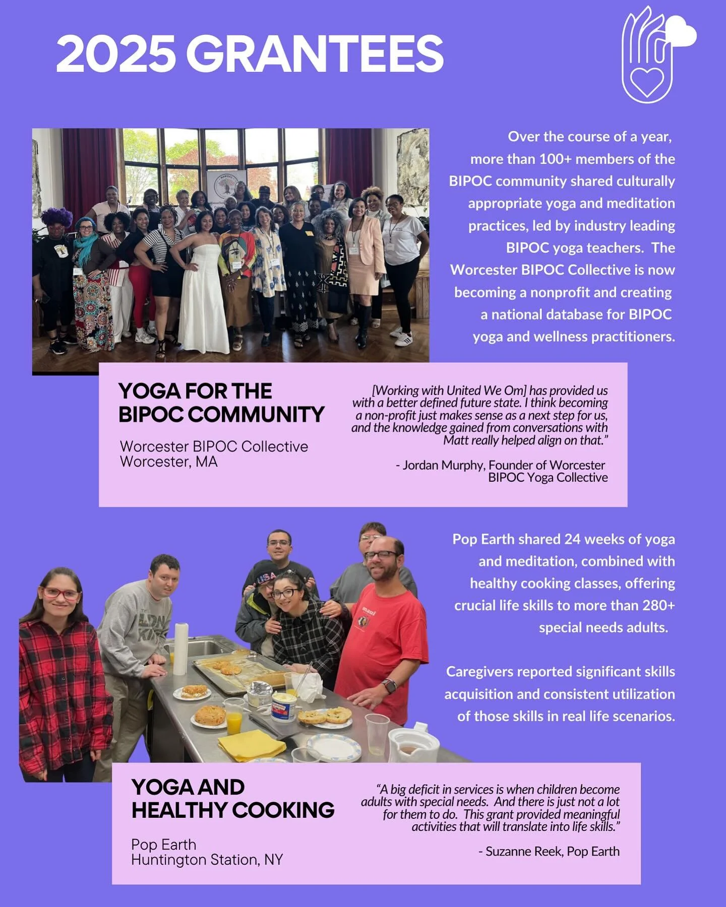 United We Om (UWO) was co-founded in 2015 as a yoga and meditation non-profit, offering trauma-informed trainings and hiring yoga teachers from trauma-impacted backgrounds to share practice with their own communities. From 2015 - 2023, UWO shared practice with more than 25,000 participants from hundreds of communities and trained more than 1000 teachers.